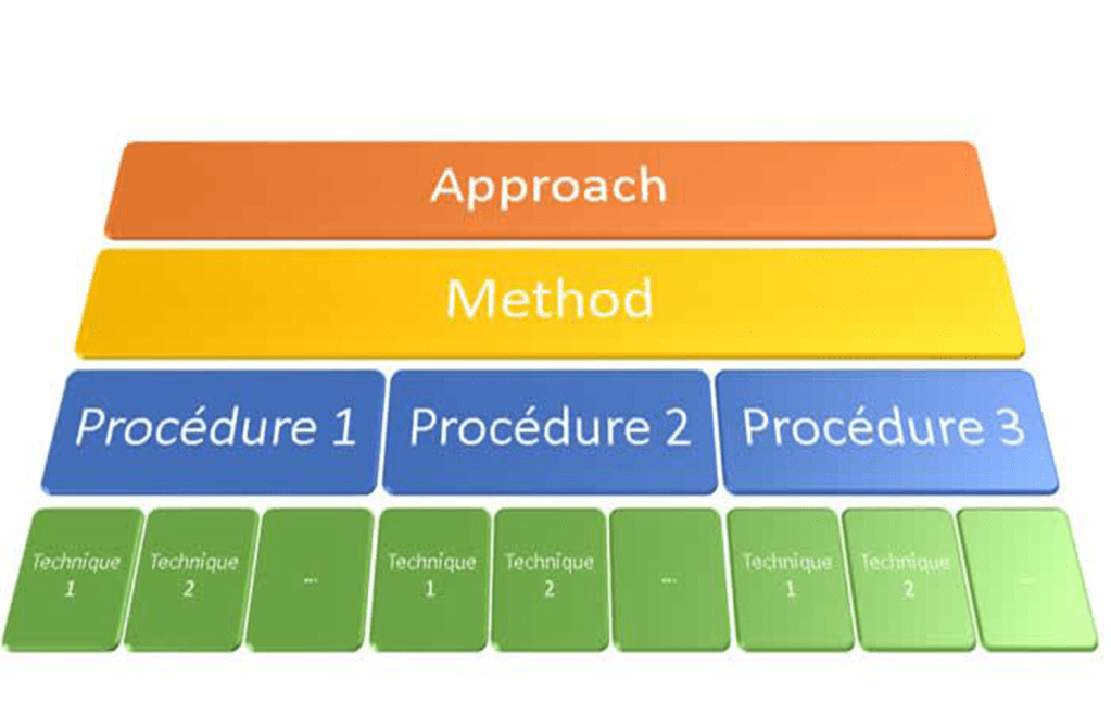 Jeremy Harmer (2007) exposes the concept of a method as the practical perspective of an approach involving types of activity, roles of teachers and learners, kinds of material, and syllabus organization. Methods include various procedures and techniques. A method consists of approach(es), procedure(s), and technique(s). Approaches are theories about the nature of language and language learning which are sources of the way things are done in the classroom and the reasons for doing them. Procedures are an ordered sequence of techniques of a method which can be described such as First you do this, then you do that. And techniques are the application of single activity e.g. silent viewing (the teacher plays the video with no sound).