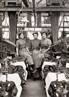 Fotografia 1: Mulheres operárias em uma fábrica de algodão em Lancashire (é um condado não metropolitano cerimonial que fica no noroeste da Inglaterra), por volta de 1908. Registro sem autor informado. Disponível em https://br.pinterest.com/pin/855050679270755679/. Acesso mar 2023.