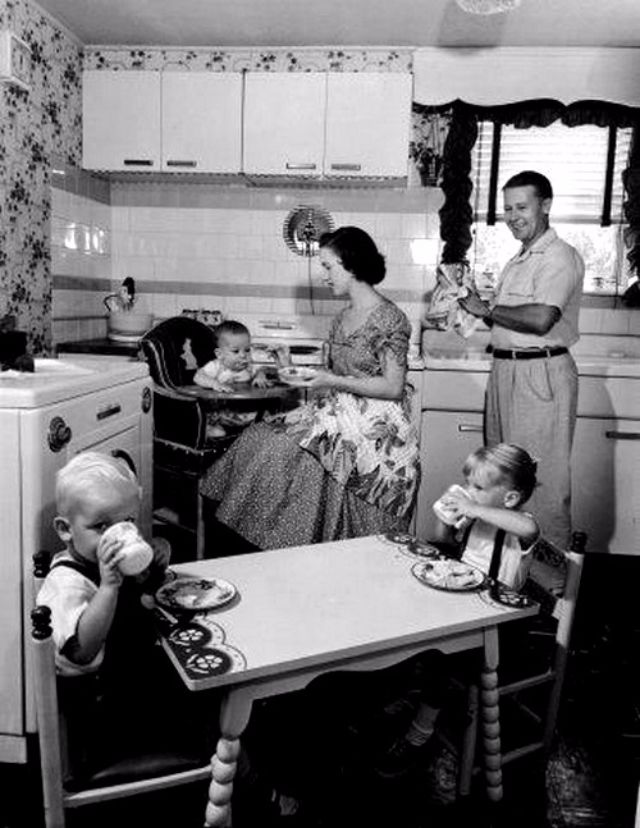 Fotografia 4: Nas décadas de 40 e 50 do século passado a mulher americana já havia conquistado espaço no mercado de trabalho, mas a “função” de dona-de-casa com todos os seus deveres com a família lhe era imposta. Em maio de 1955, a revista Housekeeping Monthly publicou um artigo chamado “o guia da boa esposa”, onde estabelecia o comportamento da mulher para que pudesse atender devidamente as necessidades do seu marido e filhos. Imagem disponível no site https://www.vintag.es/2016/12/vintage-housewives-32-lovely-vintage.html. Acesso em mar 2023.