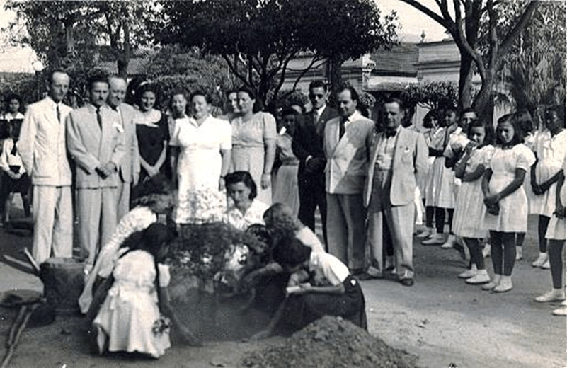 Fotografia 7: Registro externo de uma atividade cívica em homenagem ao Dia da Árvore, realizada na Praça da Autonomia. Fotografia do início da década de 1940, sem autor definido, do acervo André Mattos.