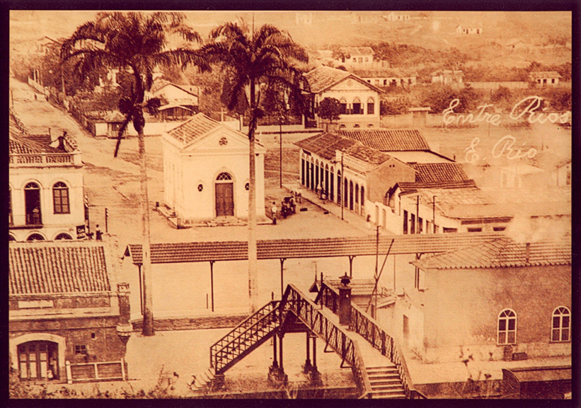 É possível também observar algumas pessoas no entorno da Capelinha: do lado direito da imagem, uma charrete com um homem possivelmente descarregando algum produto para o pequeno comercio que ali existia; a esquerda, mais dois indivíduos e uma outra pessoa na janela do prédio. A pesquisa comprovou que o espaço urbano da Vila de Entre Rios se desenvolveu do entorno da Estação Rodoviária da Estrada União e Indústria e depois da Estação Ferroviária da Central do Brasil em direção às margens do Rio Paraíba do Sul.