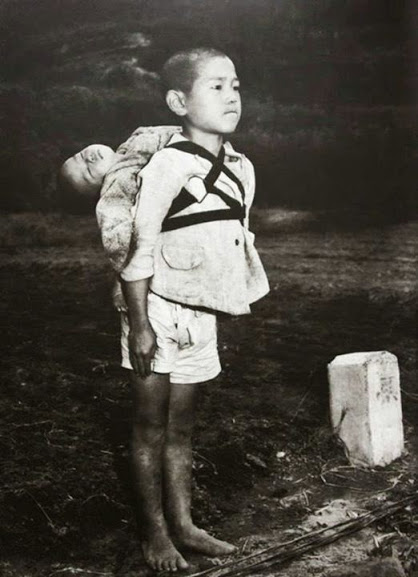 O “Menino de Nagasaki”. A fotografia do fotógrafo americano Joe O`Donnell é uma das imagens mais icônicas quanto de registros que revelam a face mais triste dos diversos conflitos empreendidos durante a história da humanidade. A imagem mostra um menino de 9 anos carregando seu irmão morto nas costas após a projeção da bomba atômica sobre a cidade de Nagasaki, pelos E.U.A., que determinou o fim da Segunda Guerra Mundial, em agosto de 1945.