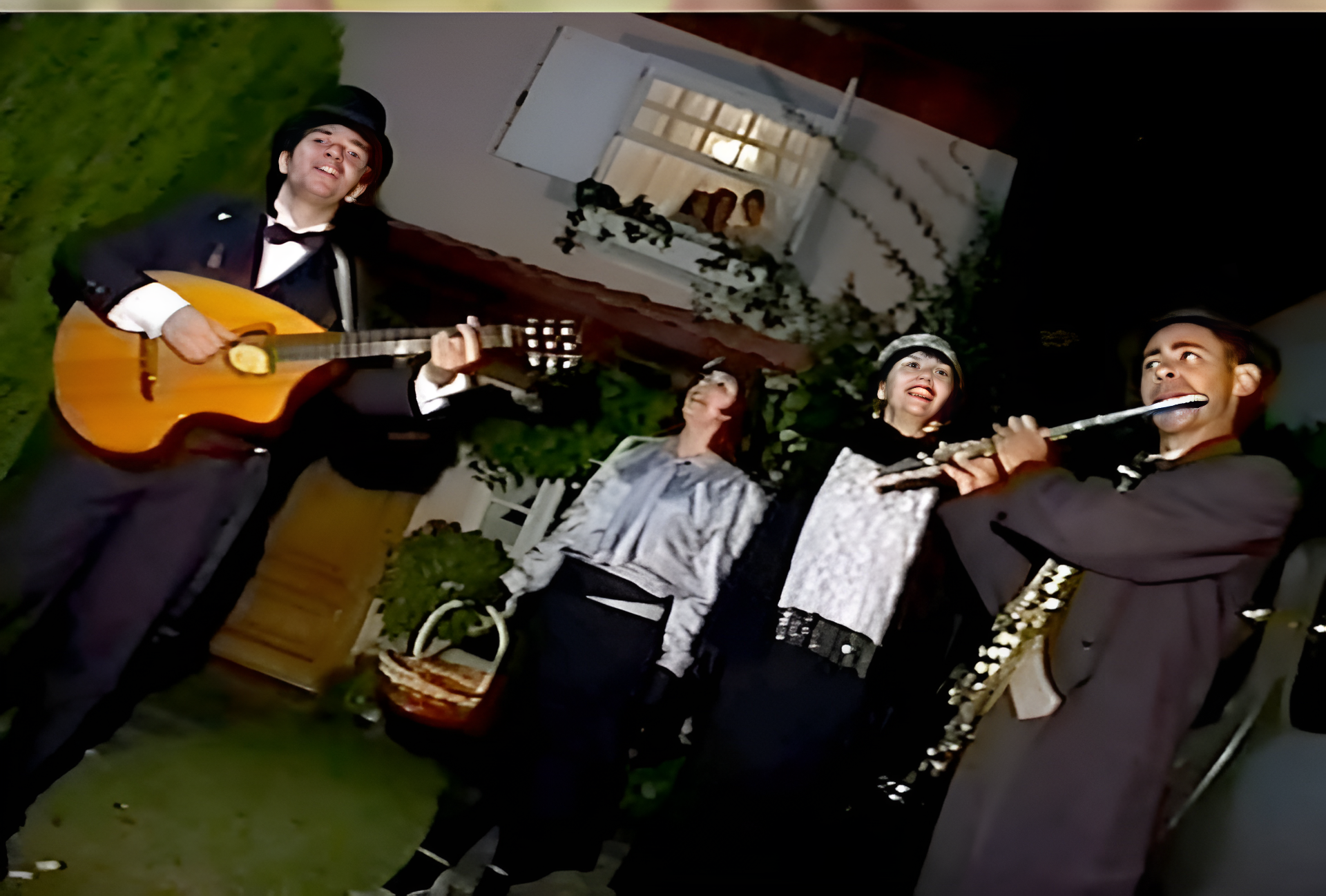 Meia-noite em ponto a trupe estava a postos em baixo da janela de Marina cantando as músicas preferidas do casal.