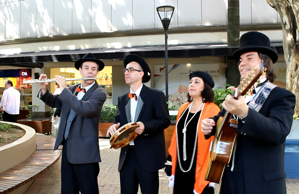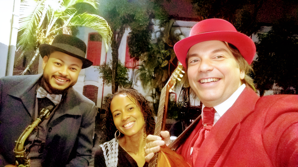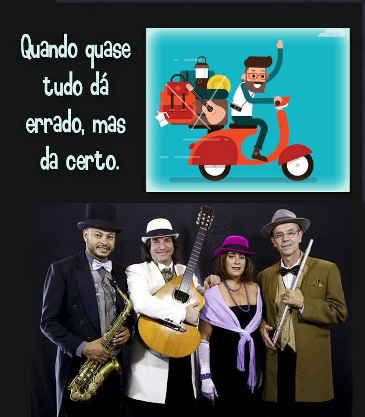 A contratante veio toda animada pedindo para eles irem ajeitando as coisas para a passagem de som, enquanto o saxofonista disfarçava arrumando o que faltava, nosso seresteiro saiu de fininho pra buscar o violão que finalmente já estava na portaria.