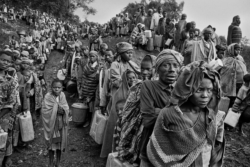 Fotografia 3:“Êxodos” é uma história reveladora, que retrata pessoas que abandonam a terra natal contra a própria vontade. Em geral elas se tornam migrantes, refugiadas ou exiladas, compelidas por forças que não têm como controlar, fugindo da pobreza, da repressão ou das guerras. “Mais do que nunca, sinto que a raça humana é somente uma. Há diferenças de cores, línguas, culturas e oportunidades, mas os sentimentos e reações das pessoas são semelhantes”, define Salgado. Imagem disponível em https://www.papocult.com.br/2018/07/20/exodos-de-sebastiao-salgado-ganha-exposicao-em-sobral/