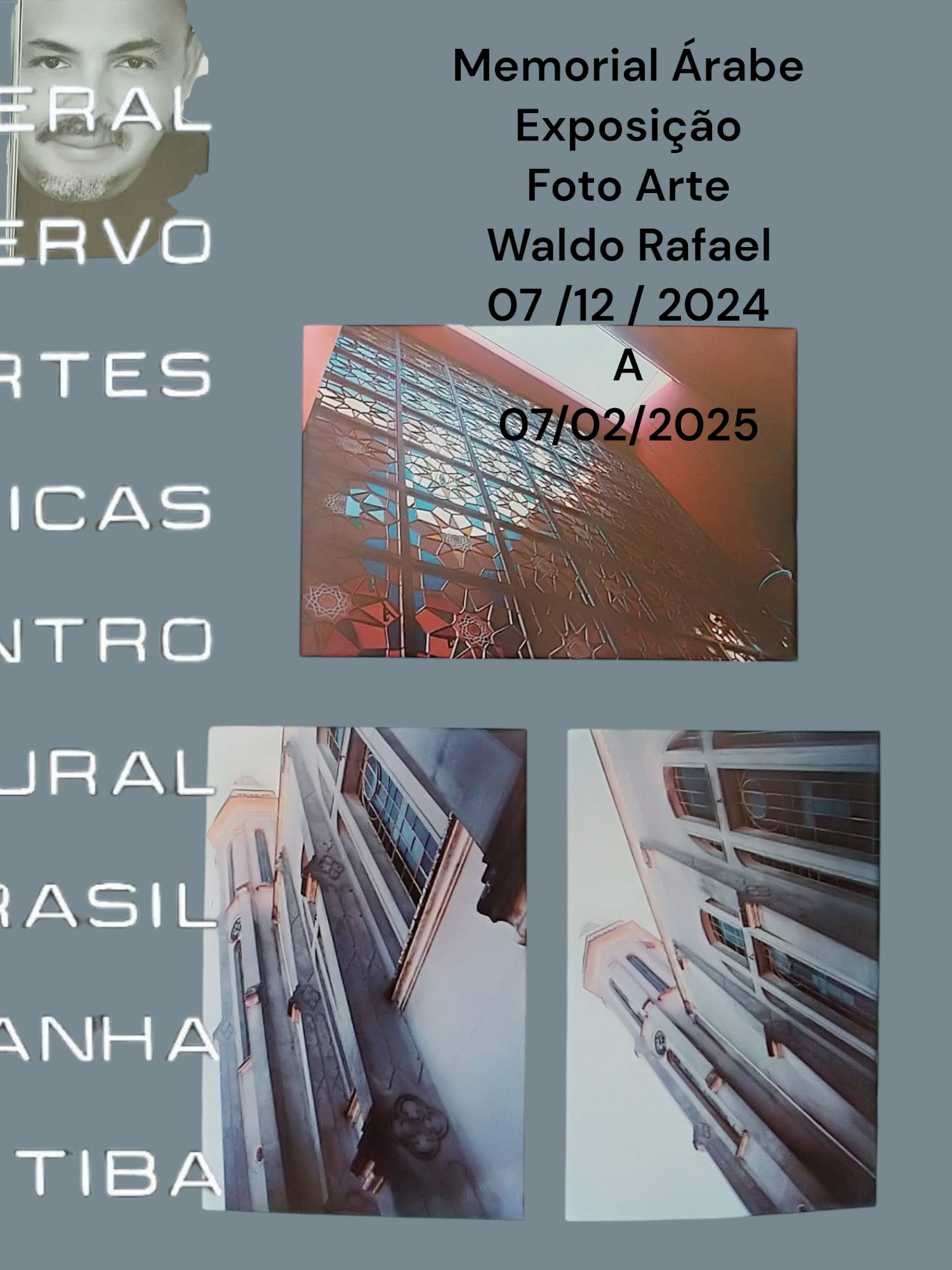 Foi inaugurada a mostra do fotógrafo e artista multimídia Waldo Rafael no Memorial Árabe – Farol do Saber Gibran Khalil Gibran, em Curitiba/Pr, no último sábado, dia 07 de dezembro, com o título de “Retrospectiva Arte – 25 Anos WALDO RAFAEL”.