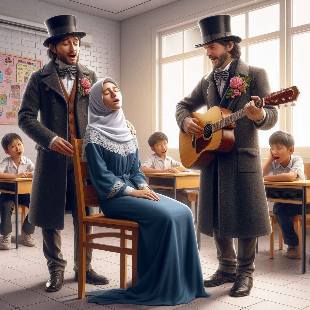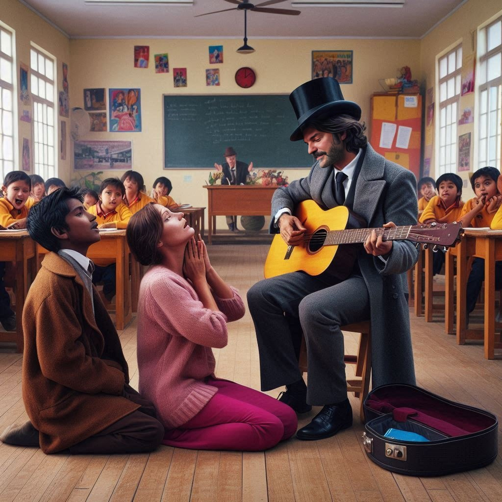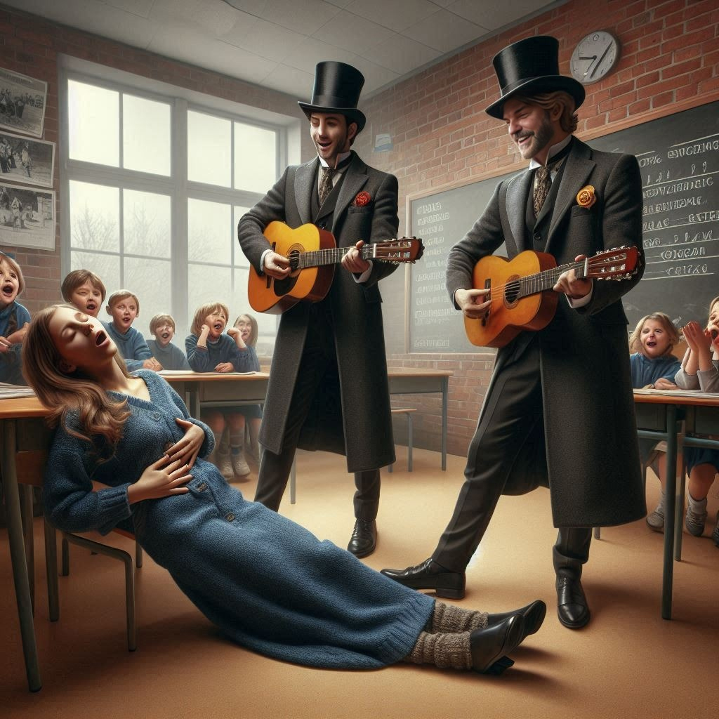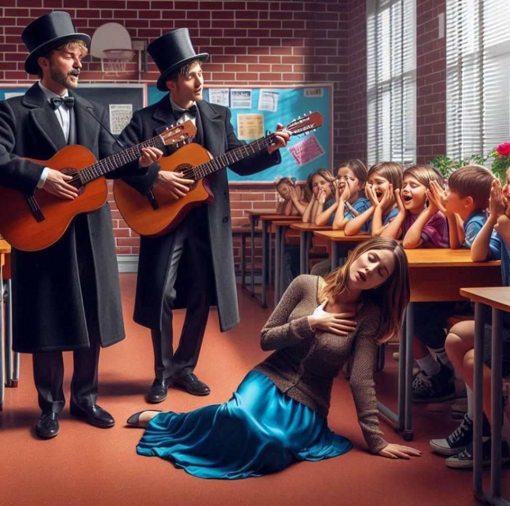 Juntou um monte de gente e até o guarda da rua veio dar uma olhada na confusão que se armou ali, e nada de essa mulher voltar a si. Resumo da ópera: a serenata acabou ficando pela metade. Uma das coordenadoras da escola, que também era cliente da serenata, nos contou que ela ficou assim o dia todo. Era só se lembrar de quem havia enviado a serenata que essa mulher desmaiava. É, gente, ficou um mistério… Quem será que enviou essa serenata, hein?