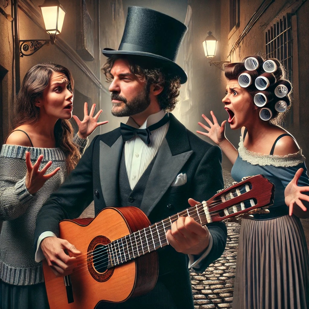 Alguns segundos depois, uma senhora veio atender. Era um protótipo perfeito da Dona Florinda do Chaves, enxugando as mãos no avental e ostentando bobes enormes na cabeça. A mulher, de cara fechada, olhou para nosso seresteiro de cima a baixo e, desconfiada, perguntou do que se tratava. Fredi, educadamente, explicou que estava ali para fazer uma serenata para a filha dela, a Andreia.