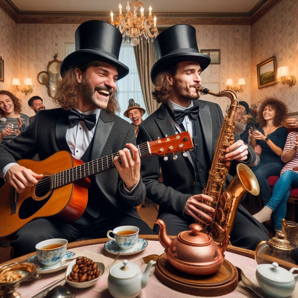 Paulo, segurando o riso enquanto tentava tocar, não resistiu e soltou algumas gargalhadas no meio das notas, contagiando os convidados. Apesar do desconforto, a leveza dos músicos transformou os instantes difíceis em diversão.