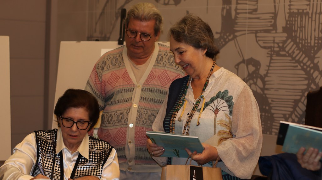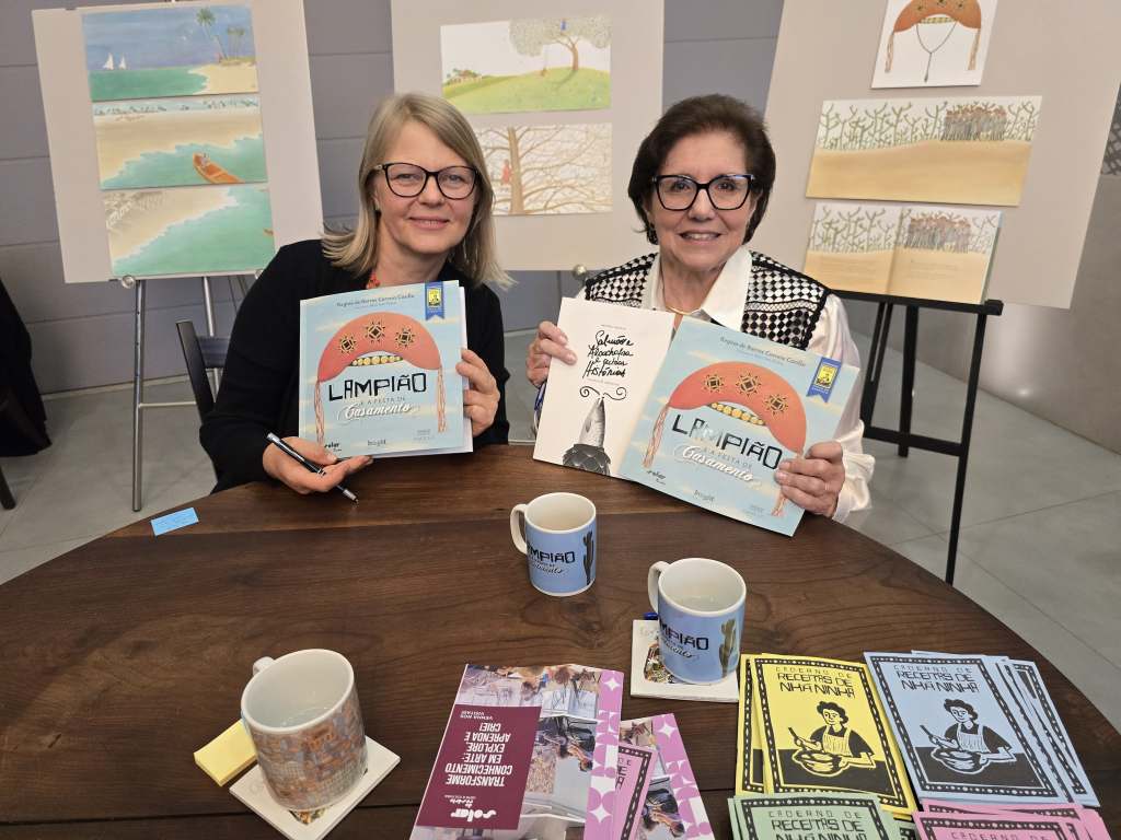Com uma concorrida sessão de autógrafos, a escritora Regina Casillo lançou dois livros simultaneamente no Solar do Rosário, em meados do mês de abril. As novas obras são a coletânea de contos e crônicas “Salmão e Alcachofra e Outras Histórias” e o infantil “Lampião e a Festa de Casamento”. Para celebrar o lançamento, Regina recebeu o público no hall do auditório que leva seu nome, no piso térreo do Solar do Rosário, junto com a artista plástica Mari Inês Piekas, que ilustrou a publicação dedicada às crianças.