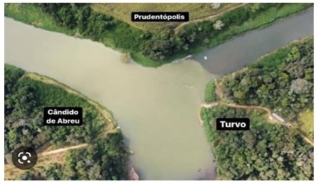 Tríplice fronteira dos municípios de C. de Abreu, Turvo, e Prudentópolis, encontro com o rio Ivaí. Fonte: OLIVEIRA, 2023.