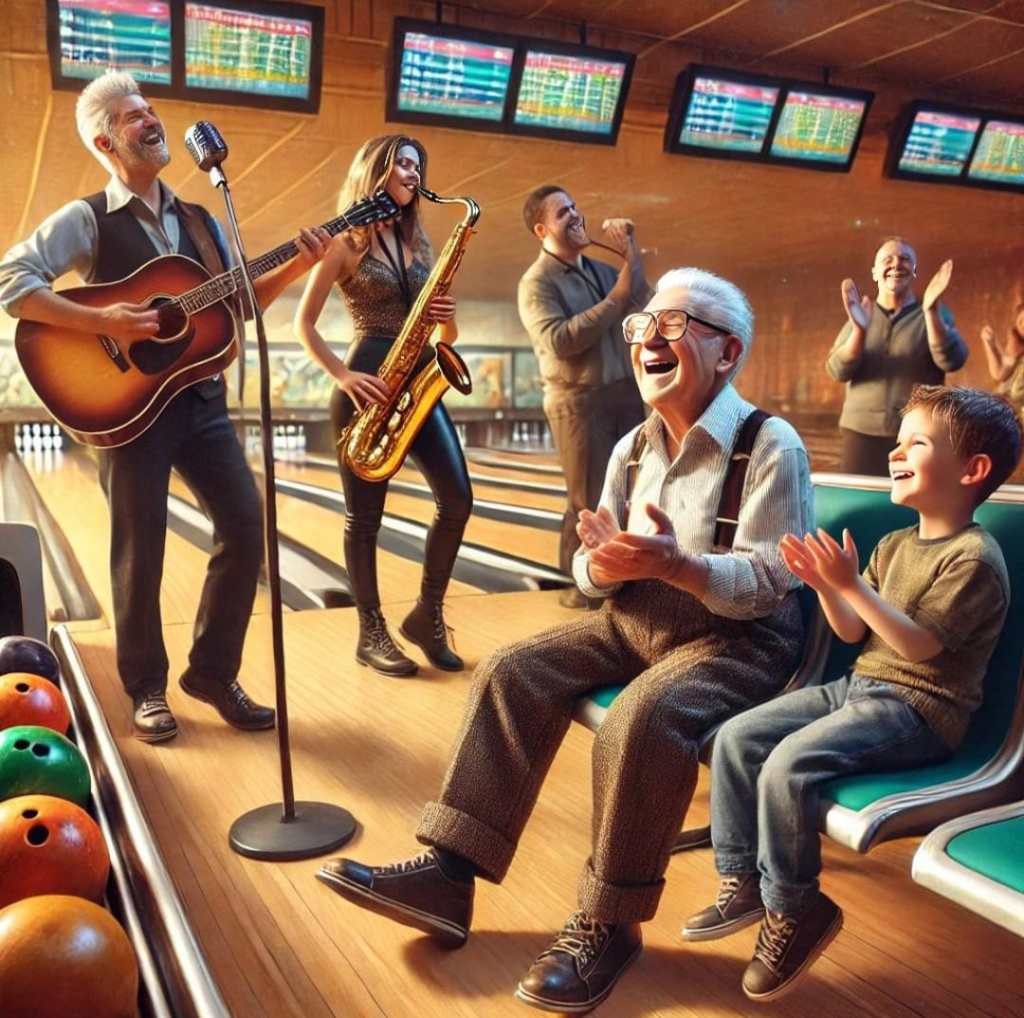 Aplausos calorosos tomaram conta do boliche. A cantora puxou outra música animada, e logo todos estavam cantando juntos. Miguel, empolgado, pegou sua bola e lançou… STRIKE!