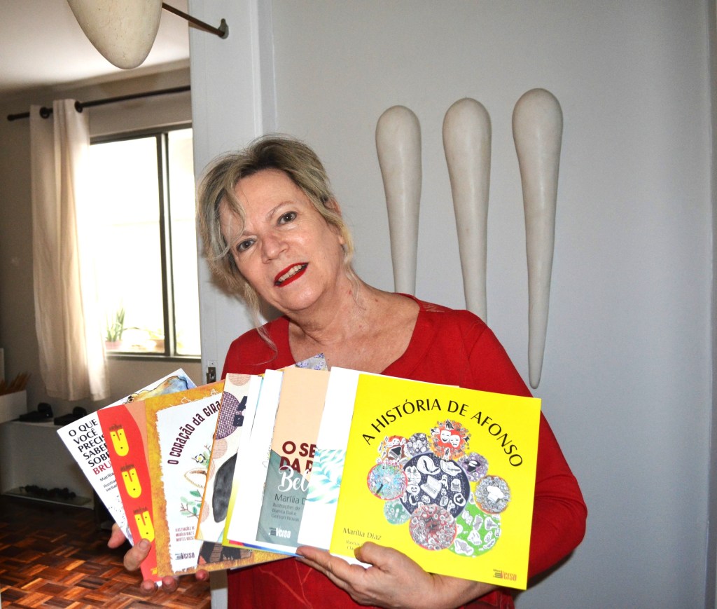 Durante a peste permaneci por dois anos dentro de um apartamento em Ponta Grossa. Comigo estavam o meu marido e minha mãe, a época com 88 anos. Ela tricotava diuturnamente e eu escrevia, lia, bordava, cuidava da casa e da cozinha. Sentia-me triste e muitas vezes com medo e insegurança, mas foi um tempo muito potente para a criação. Participei de seis exposições virtuais, ganhei dois prêmios, escrevi vários livros infantis, contos, e um livro autobiográfico.