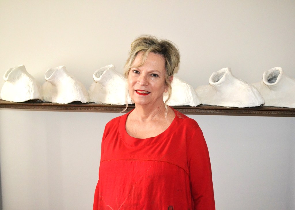 Terra a terra, hodierna, prenhe e fecunda. Na transmutação do ato, a multiplicação de presenças, a condensação de memórias e um novo florescer do imaginário. Dediquei-me a modelar flores, corpos prenhes e frutos. Meu corpo é objeto e aporte de muitos trabalhos realizados. Já fiz forma de minhas costas e do corpo todo, usei o cotovelo, o joelho, os dedos e o punho como forma, fiz cópia da mão de minha irmã, dos umbigos de meus alunos… Recorrências.