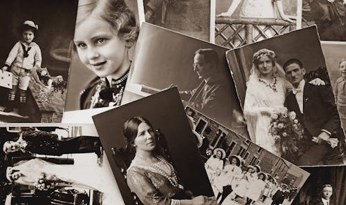 Imagem 1: Um mosaico de fotografias… pessoas, famílias, outros tempos, histórias de vida, memórias. Disponível em https://www.pexels.com/pt-br/foto/foto-em-tons-de-cinza-de-fotos-antigas-3617568/.